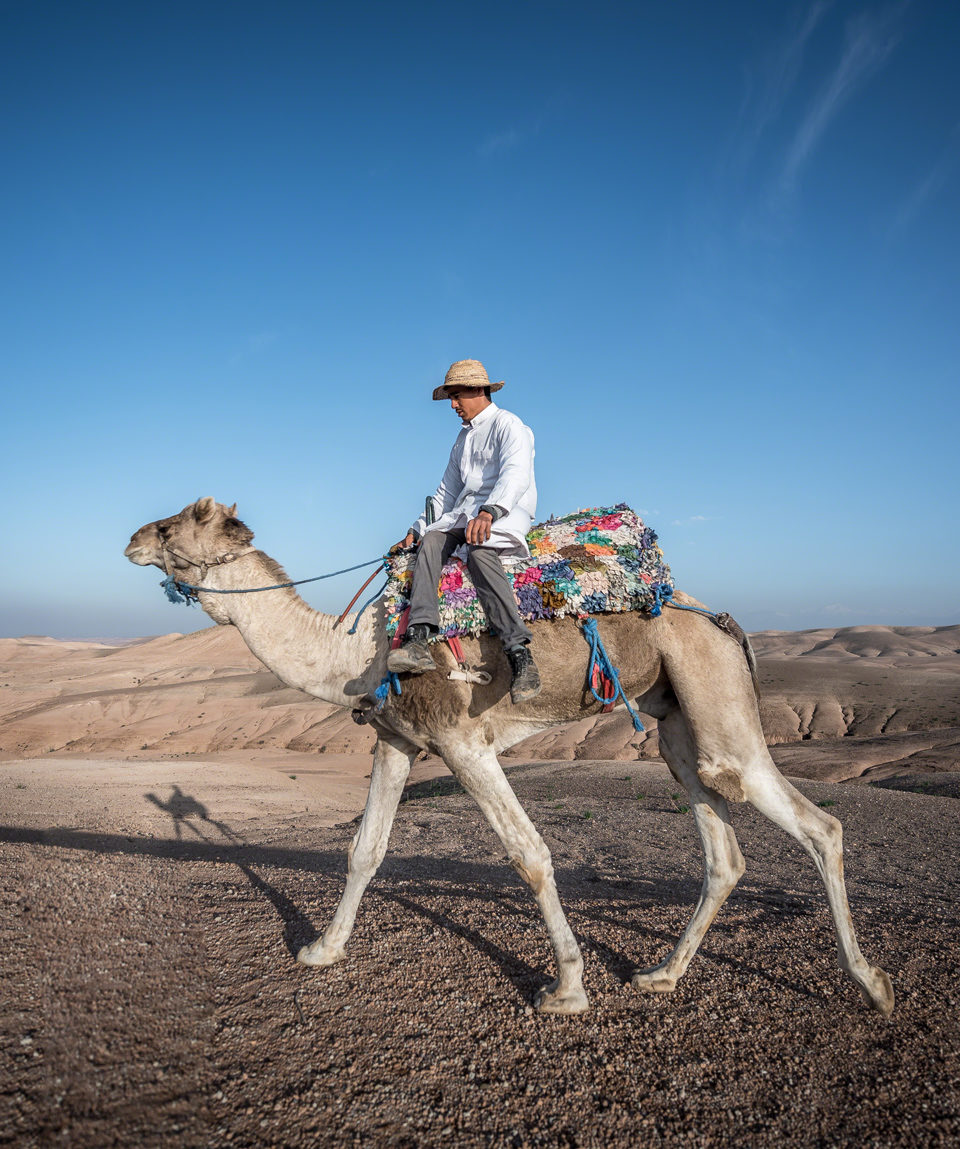 Discover the very essence of the exceptional with our must-do experience: a camel ride through the Agafay Desert, a unique landscape of carved stones, punctuated by photogenic dune-like hills. Departure from an enchanting oasis. Exclusive to Agafay, reserved for small groups.